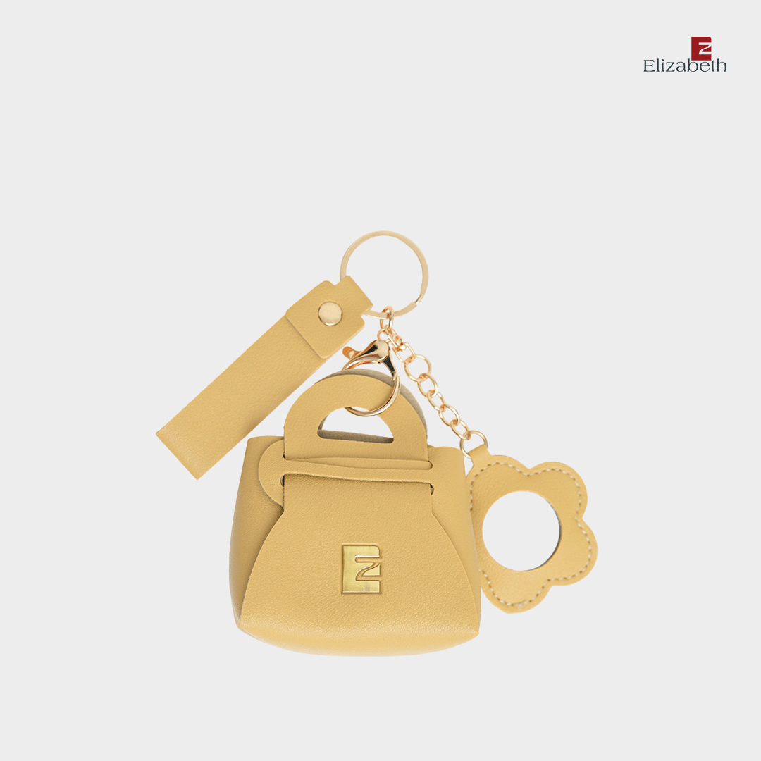 – Design pouch berbentuk mini bag fashionable dan cermin bunga cantik dihiasi logo Elizabeth