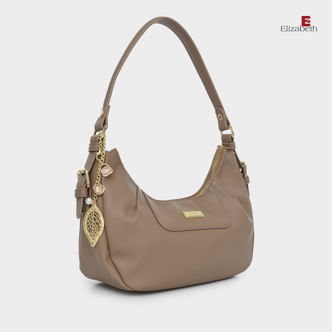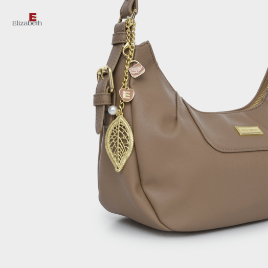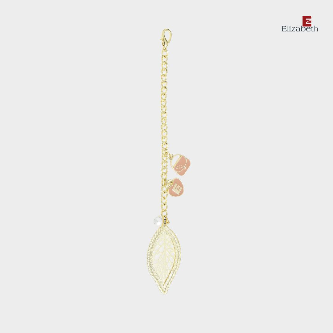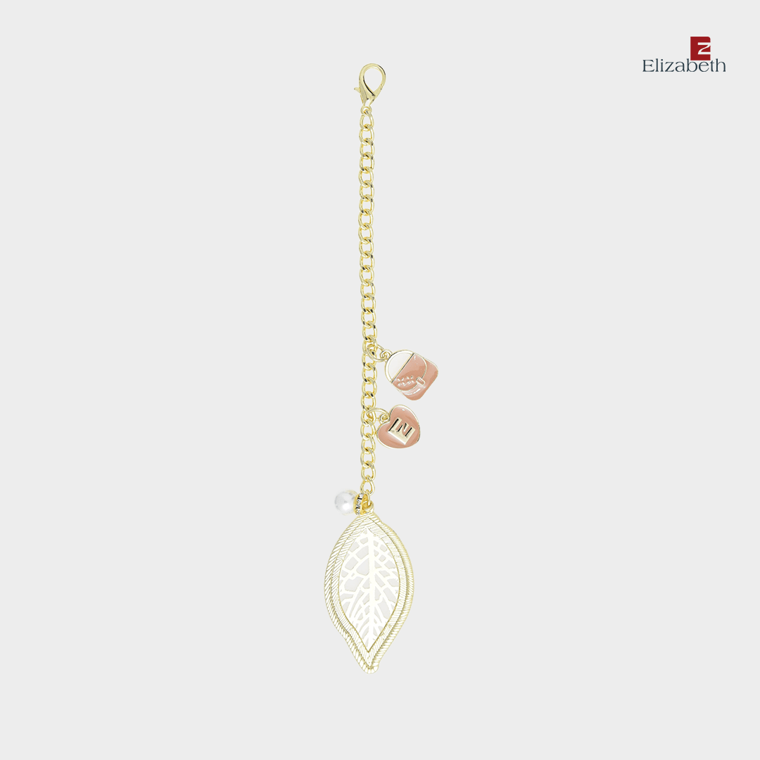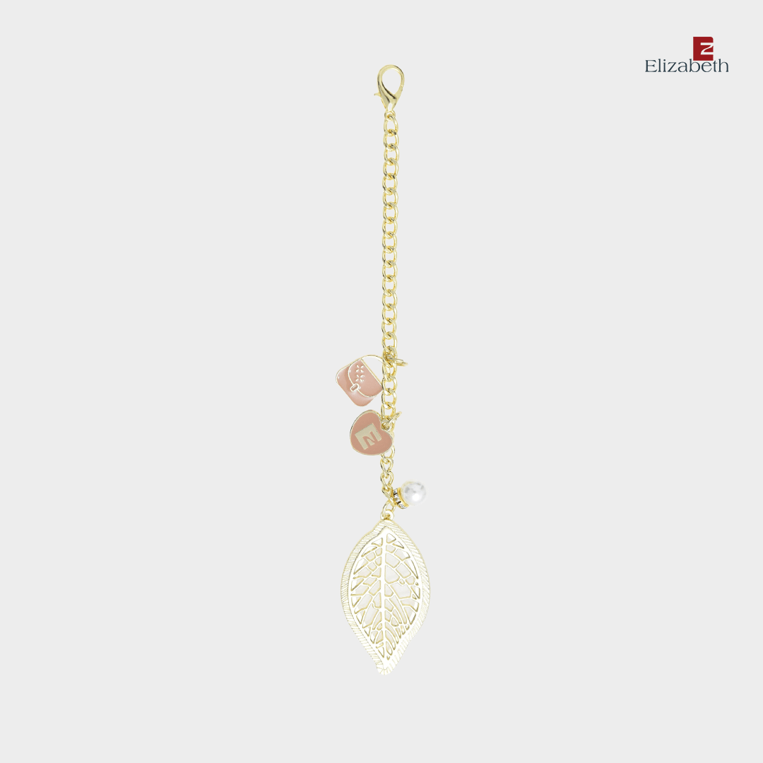 – Design bandul berupa daun cantik berhiaskan ornamen berbentuk tas, dan logo Elizabeth bentuk hati