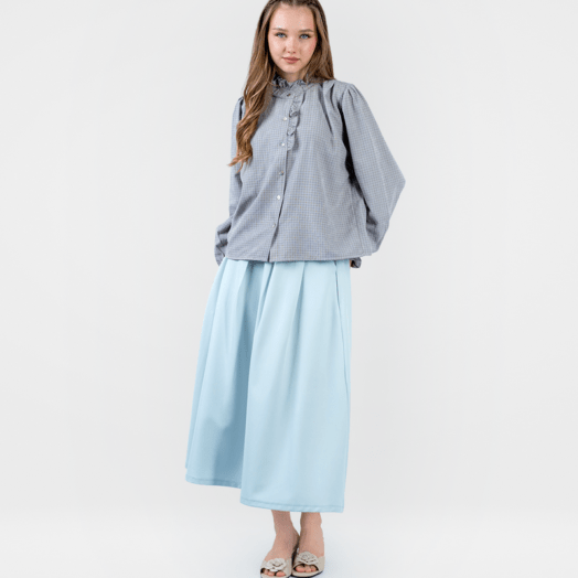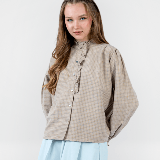 Blouse Wanita 0559-3210 – Dirancang dengan model yang casual. Desain menggunakan motif kotak-kotak pada seluruh bagian bahan. Blouse ini memiliki lengan panjang dan terdapat full kancing pada bagian depan. Bahan yang nyaman, cocok untuk digunakan sehari-hari. (Tinggi model pada foto : 170 cm)