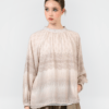 Blouse Pattern 0595-2136 – Dirancang dengan model yang casual. Desain menggunakan motif abstrak pada seluruh bagian bahan. Blouse ini memiliki lengan panjang dengan bentuk kerah tali pita. Terdapat kancing pada bagain depan. Bahan yang nyaman, cocok untuk digunakan sehari-hari. (Tinggi model pada foto : 173 cm)