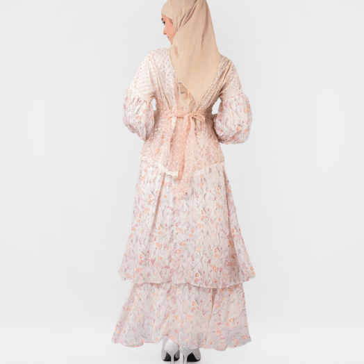 Gamis Floral 0559-3128 – Dirancang dengan model yang mewah. Desain menggunakan motif bunga-bunga pada seluruh bagian bahan. Gamis ini memiliki lengan panjang berbentuk balon yang dipadukan dengan rompi berbahan brokat. Bagian dress gamis berbentuk ruffle. Bahan yang nyaman, cocok untuk digunakan sehari-hari. (Tinggi model pada foto : 171 cm)