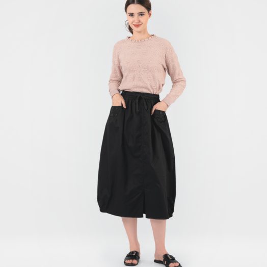 Rok Midi 0559-3450 – Dirancang dengan model yang casual. Desain menggunakan warna polos pada seluruh bagian bahan. Rok ini memiliki saku pada bagian depan dan dilengkapi dengan tali pada bagian pinggang. Bahan yang nyaman, cocok untuk digunakan sehari-hari. (Tinggi model pada foto : 171 cm)