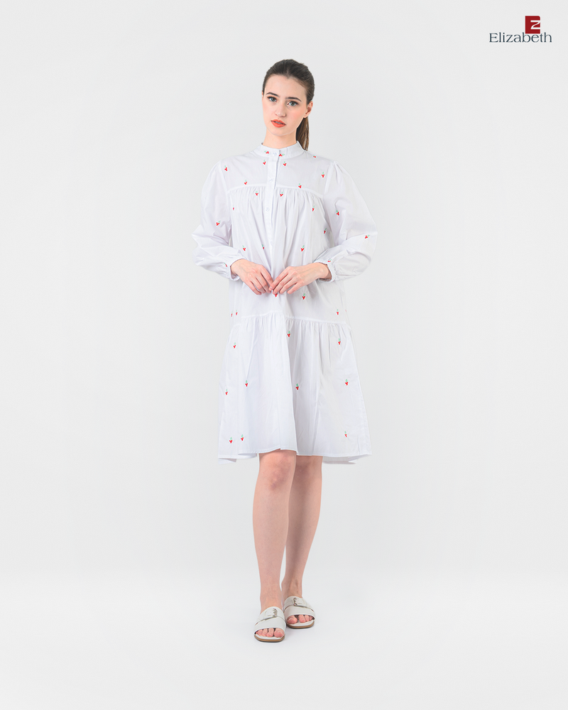 Tunik | Dress Midi Bordir 0559-3038 – Dirancang dengan model yang casual. Desain menggunakan motif bordir chery pada seluruh bagian bahan. Memiliki lengan panjang dengan full kancing pada bagian depan. Bahan yang nyaman, cocok untuk digunakan sehari-hari. (Tinggi model pada foto : 171 cm)