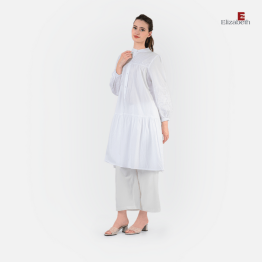 Tunik Bordir 0559-3451 – Dirancang dengan model yang casual. Desain didominasi dengan menggunakan warna polos, dikombinasikan dengan motif bordir pada bagian depan dan juga lengan. Tunik ini memiliki lengan panjang berbentuk balon. Dilengkapi dengan kancing pada bagian depan. Bahan yang nyaman, cocok untuk digunakan sehari-hari. (Tinggi model pada foto : 171 cm)