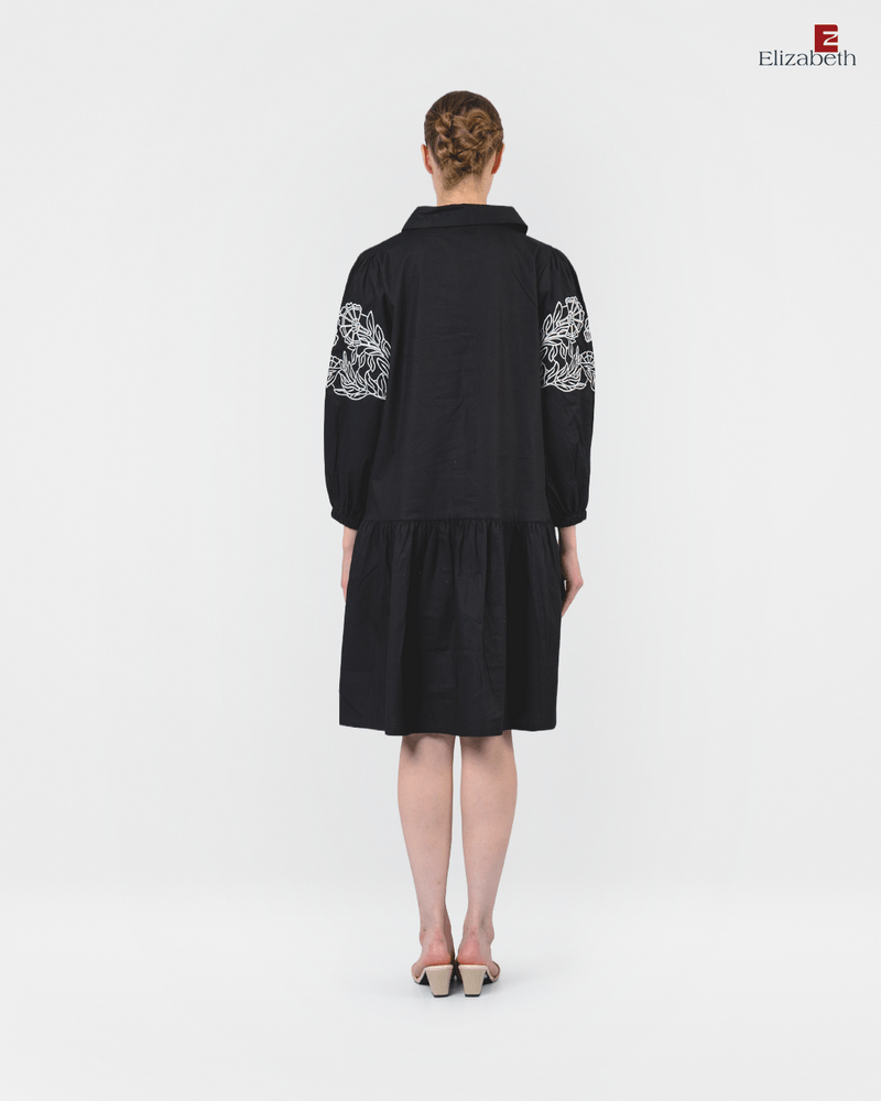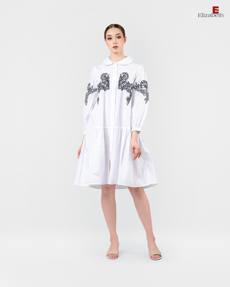 Tunik Dress 0559-3503 – Dirancang dengan model yang casual. Desain didominasi dengan menggunakan warna polos kombinasi motif bordir. Memiliki lengan panjang berbentuk balon. Pada bagian depan terdapat full kancing. Bahan yang nyaman, cocok untuk digunakan sehari-hari. (Tinggi model pada foto : 173 cm)