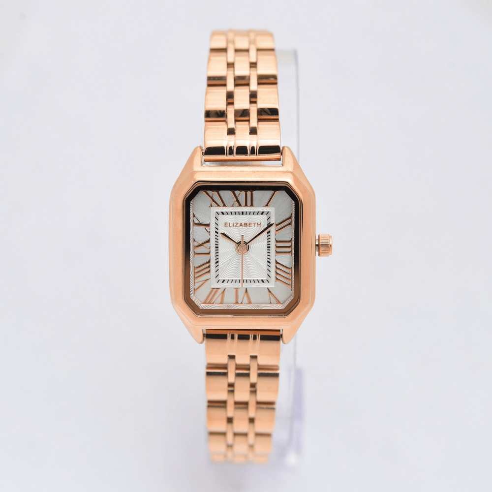 Jam Tangan 2201-0961 – Jam tangan Elizabeth ini dirancang dengan tali strap stainless steel dan link bracelet. Index numeral didesain dengan menggunakan angka romawi.