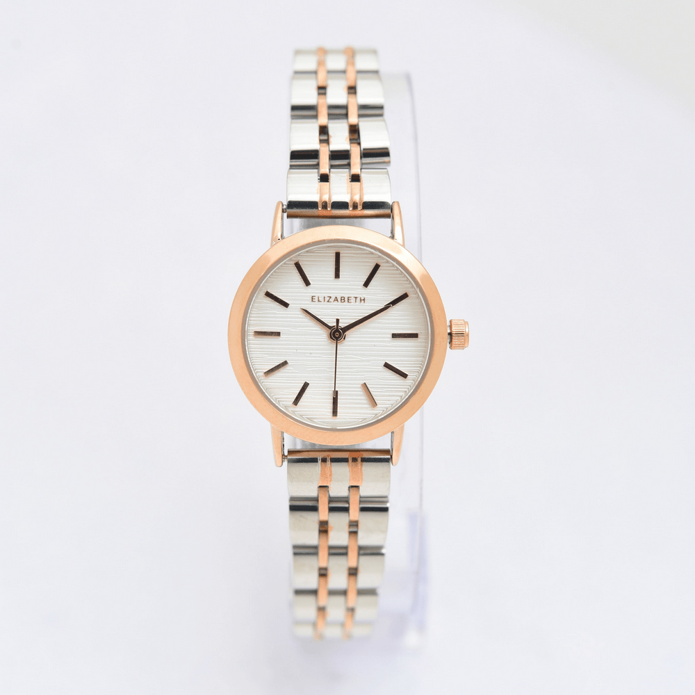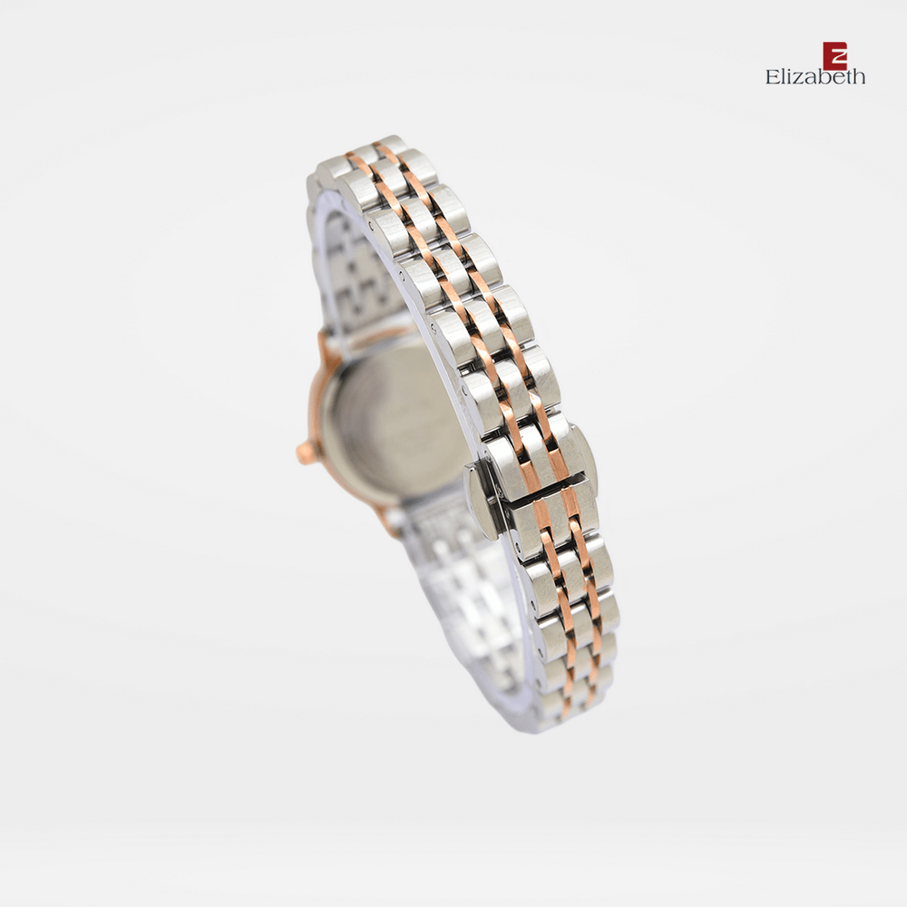 Jam Tangan 2201-0962 – Jam tangan Elizabeth ini dirancang dengan tali strap stainless steel dan link bracelet. Index numeral didesain dengan menggunakan strips.