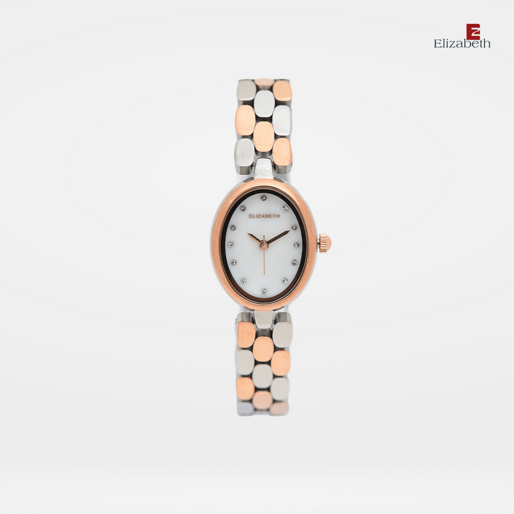 Jam Tangan 2201-0970 – Jam tangan Elizabeth ini dirancang dengan tali strap stainless steel dan link bracelet. Index numeral didesain dengan menggunakan manik-manik.