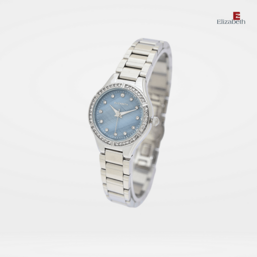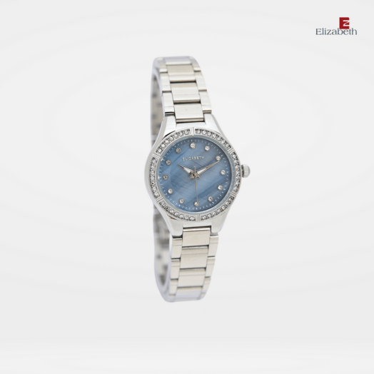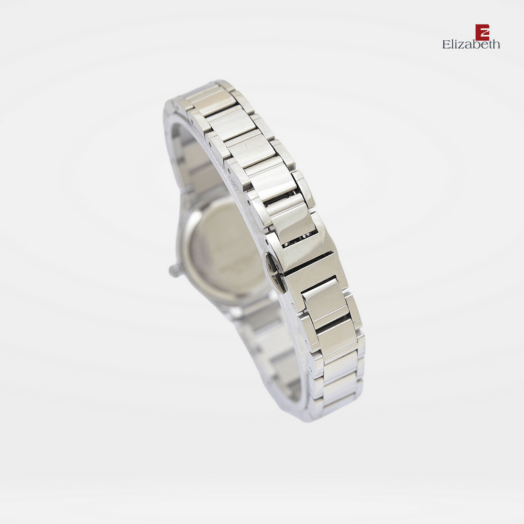 Jam Tangan 2201-0975 – Jam tangan Elizabeth ini dirancang dengan tali strap stainless steel dan link bracelet. Index numeral didesain dengan menggunakan manik-manik. Pada bagian bezel juga dilengkapi dengan variasi manik-manik.