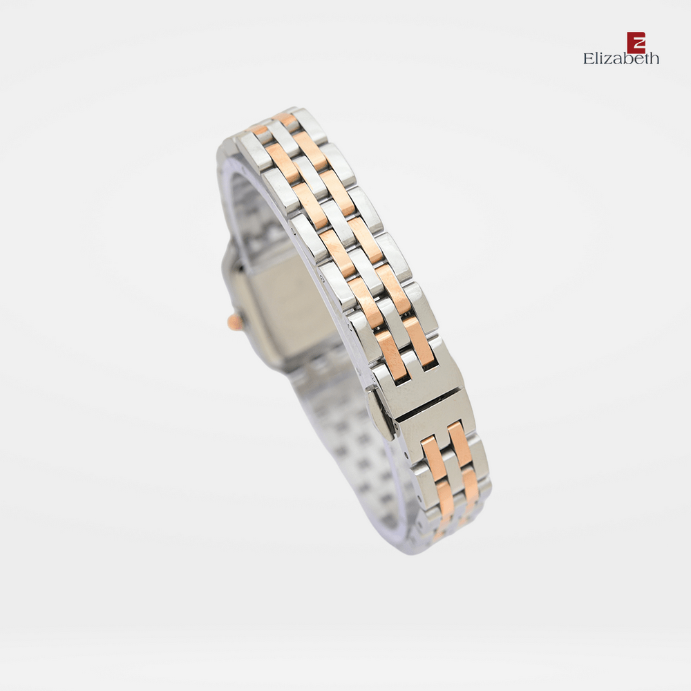 Jam Tangan 2201-0990 – Jam tangan Elizabeth ini dirancang dengan tali strap stainless steel dan link bracelet. Index numeral didesain dengan menggunakan strips kombinasi manik-manik.