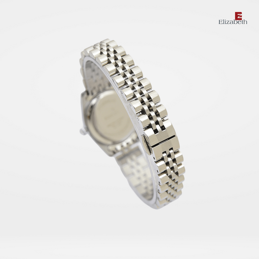 Jam Tangan 2201-0993 – Jam tangan Elizabeth ini dirancang dengan tali strap stainless steel dan link bracelet. Index numeral didesain dengan menggunakan strips kombinasi manik-manik.