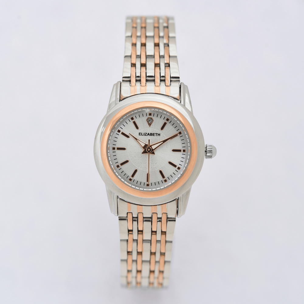 Jam Tangan 2201-1005 – Jam tangan Elizabeth ini dirancang dengan tali strap stainless steel dan link bracelet. Index numeral didesain dengan menggunakan strips kombinasi manik-manik.