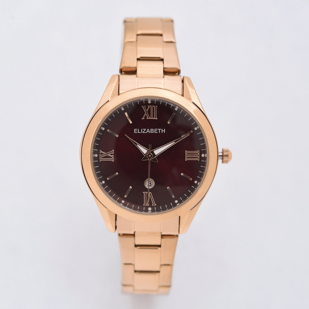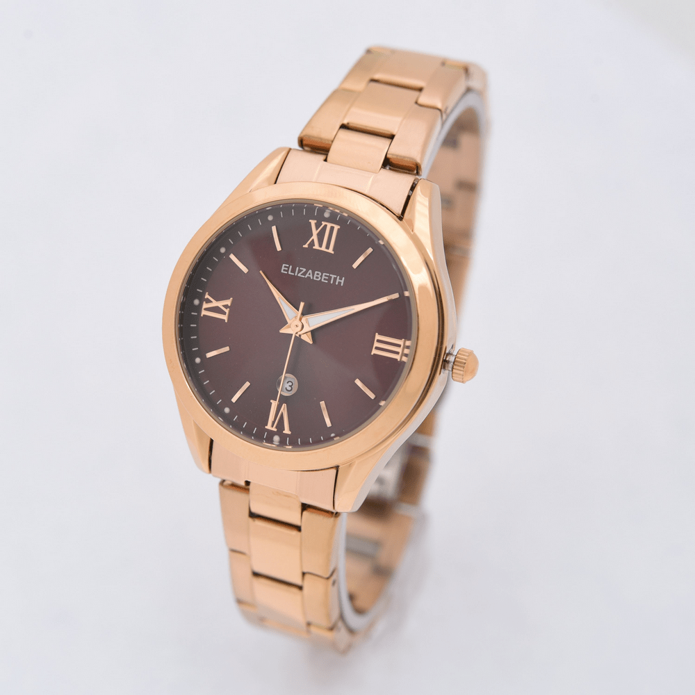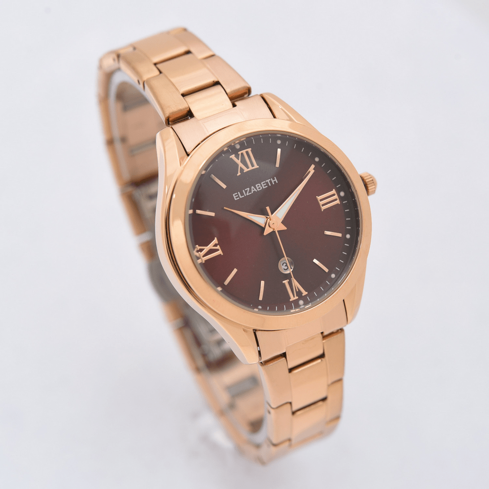 Jam Tangan 2201-1006 – Jam tangan Elizabeth ini dirancang dengan tali strap stainless steel dan link bracelet. Index numeral didesain dengan angka romawi kombinasi strips.