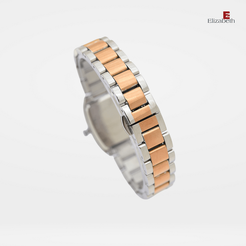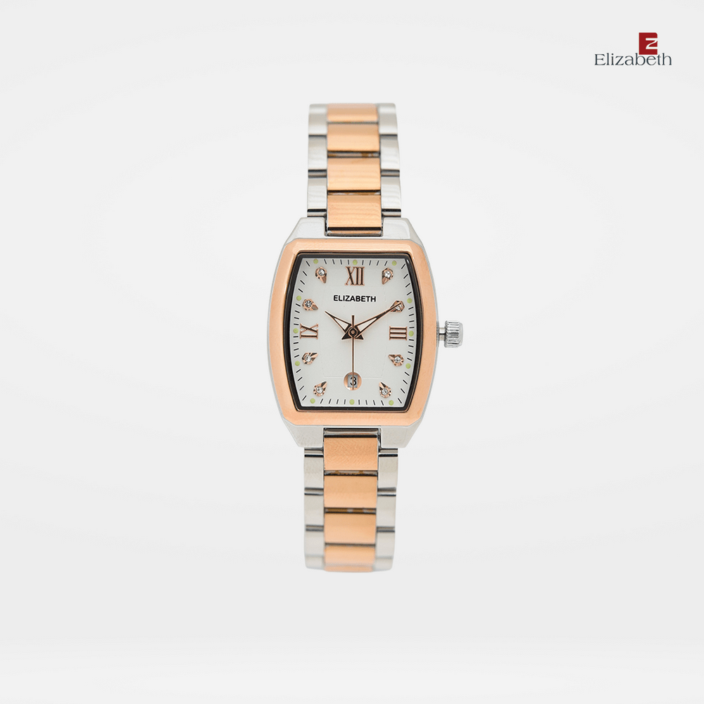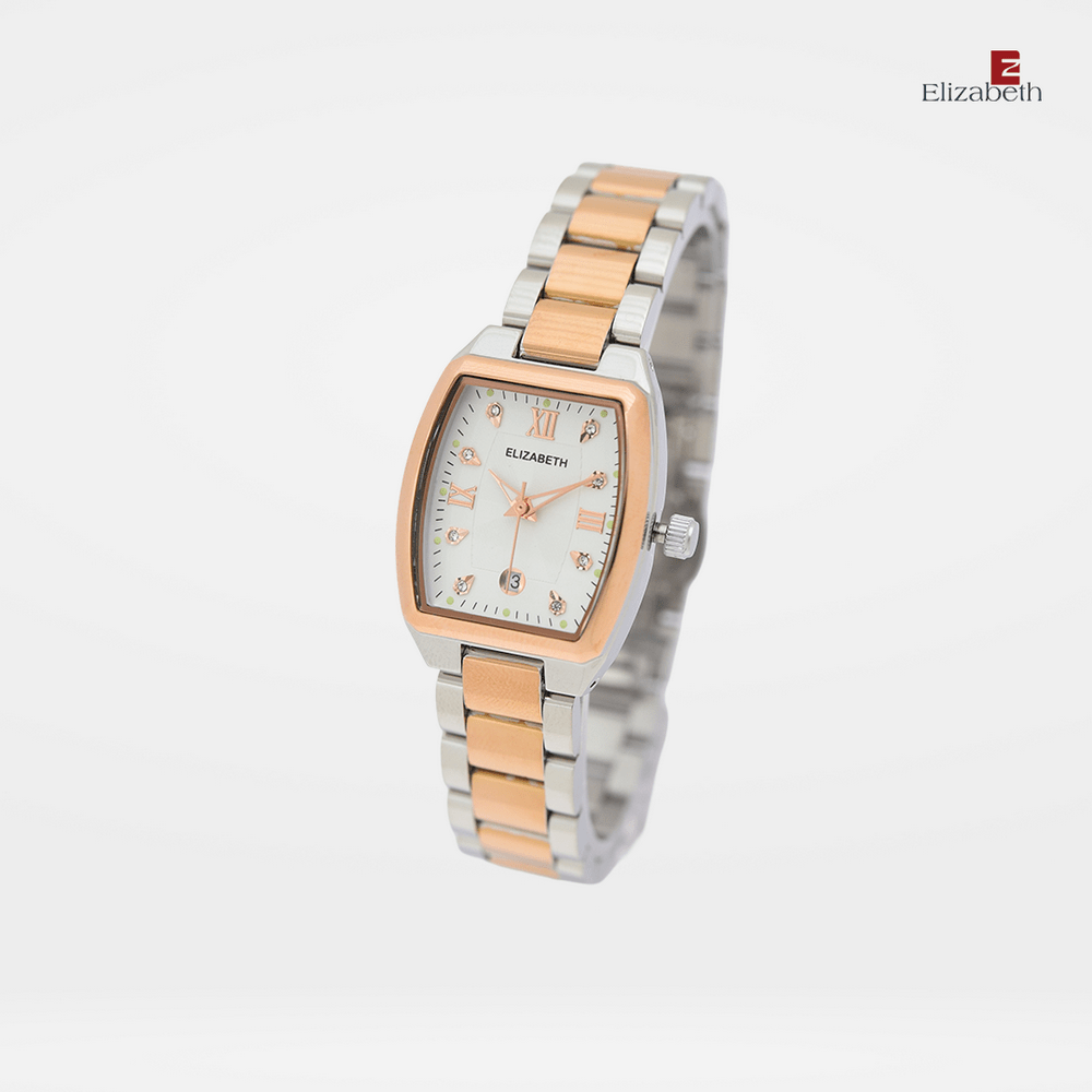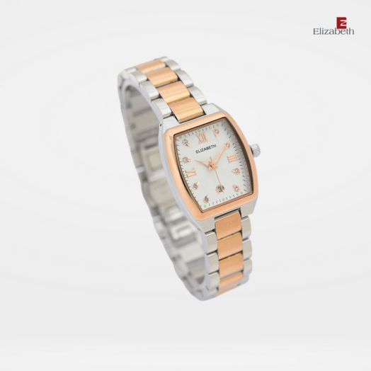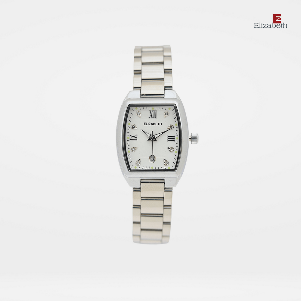 Jam Tangan 2201-1009 – Jam tangan Elizabeth ini dirancang dengan tali strap stainless steel dan link bracelet. Index numeral didesain dengan menggunakan angka romawi kombinasi manik-manik.