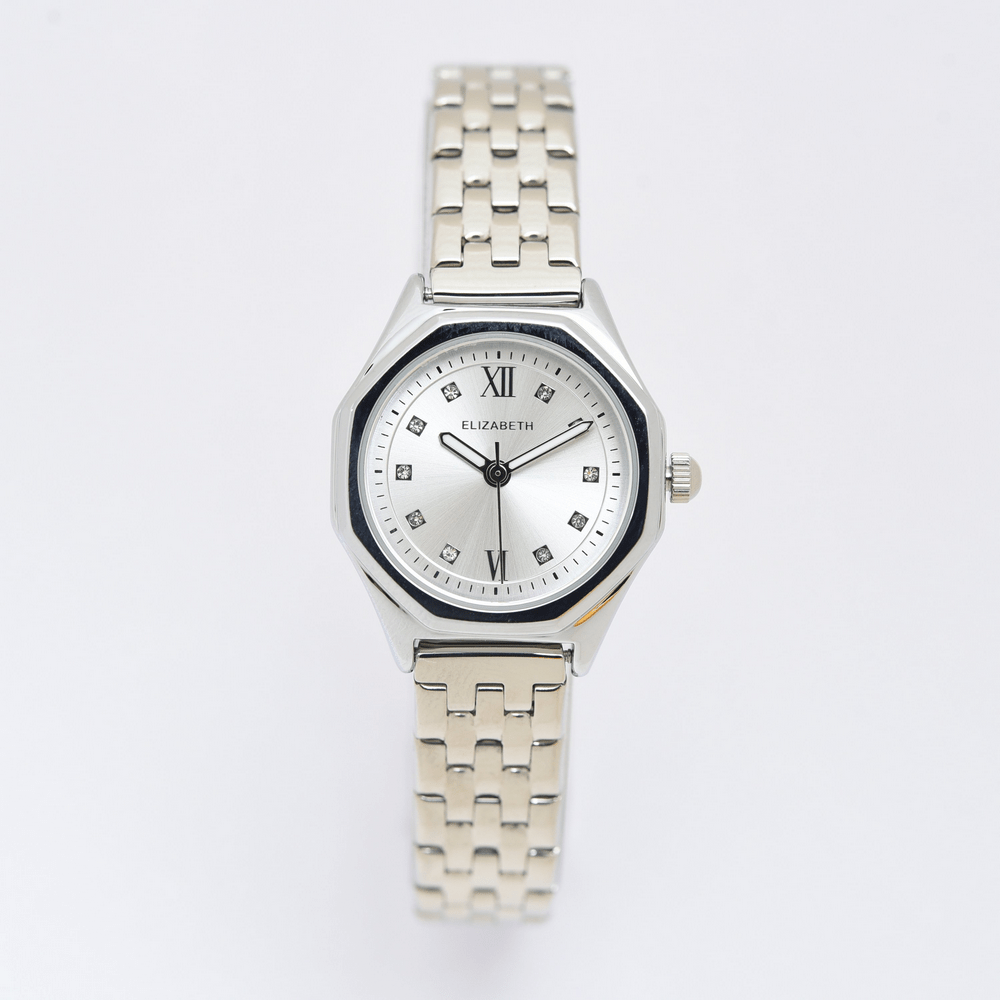 Jam Tangan 2201-1023 – Jam tangan Elizabeth ini dirancang dengan tali strap stainless steel dan link bracelet. Index numeral didesain dengan menggunakan angka romawi kombinasi manik-manik.