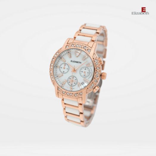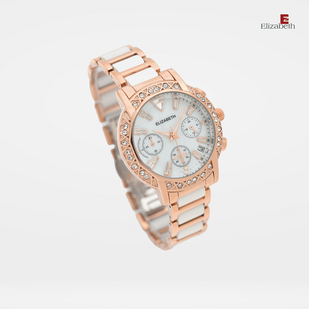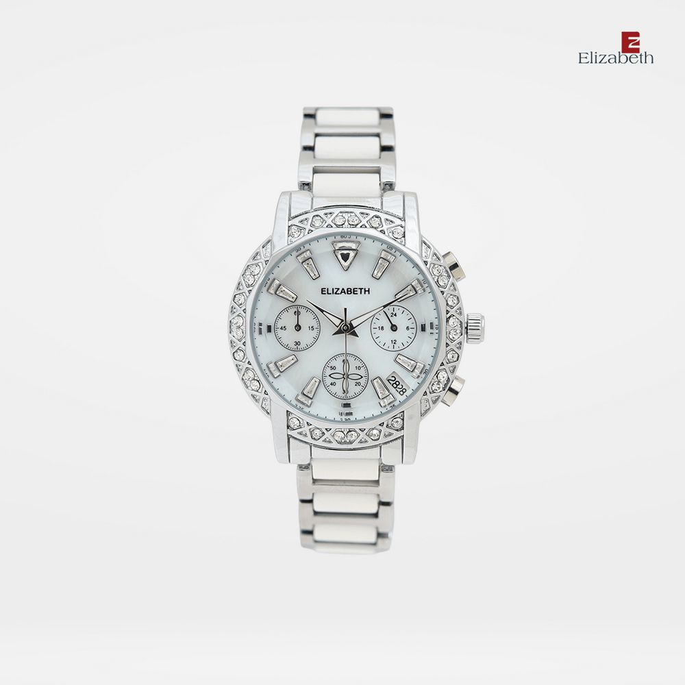 Jam Tangan 2201-1013 – Jam tangan Elizabeth ini dirancang dengan tali strap acetate plastic dan link bracelet. Index numeral didesain dengan menggunakan manik-manik.