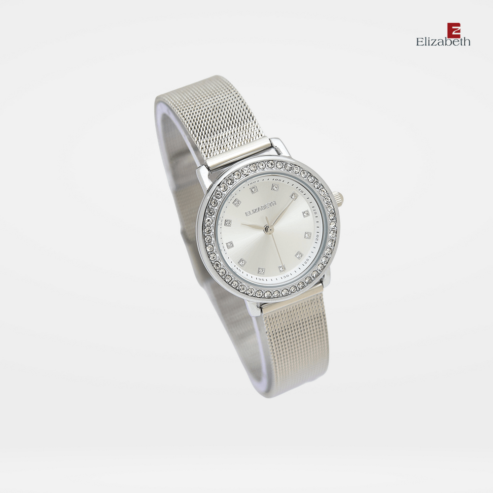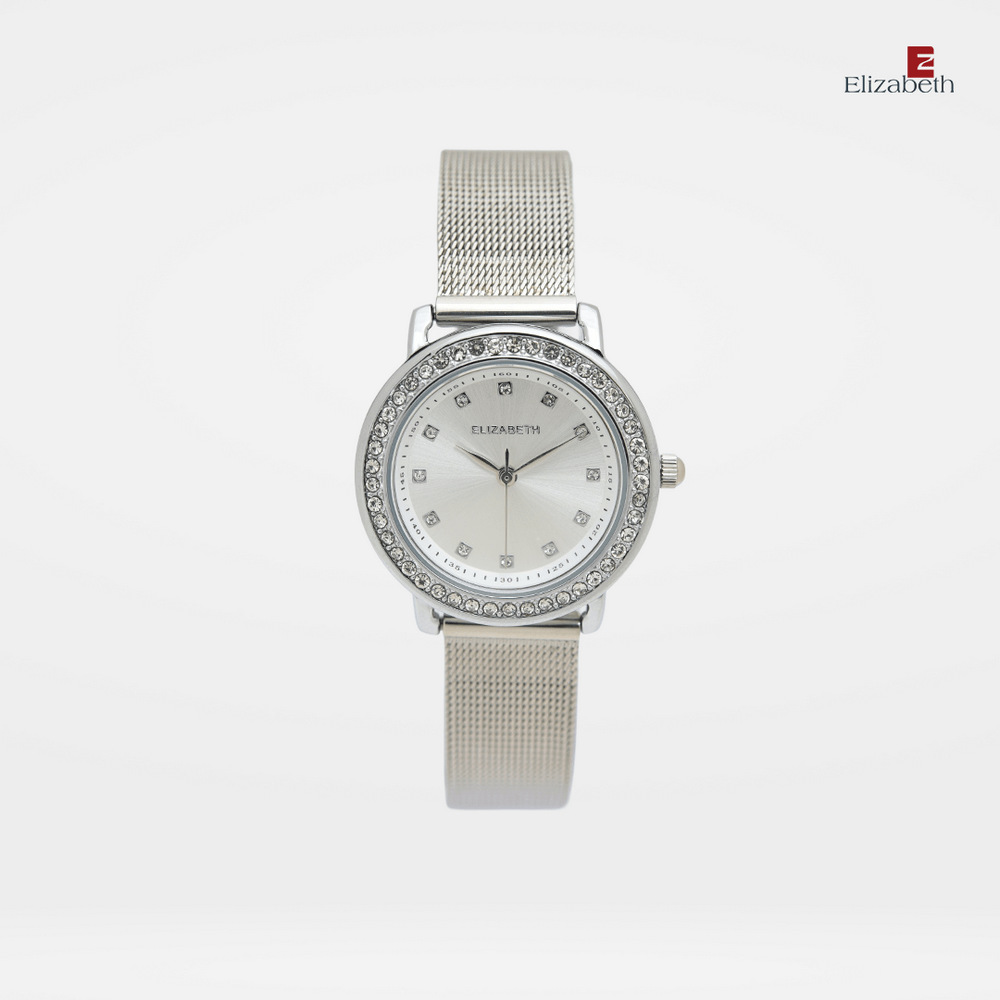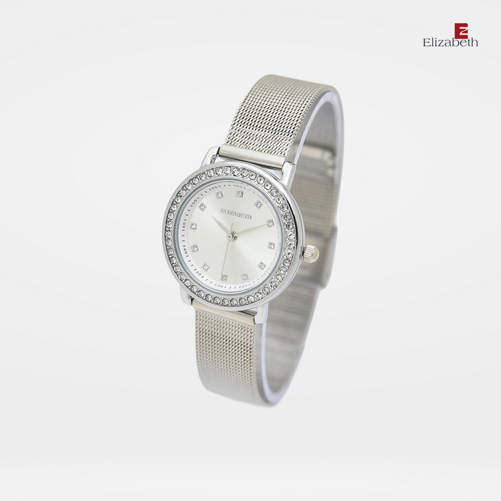 Jam Tangan 2203-0689 – Jam tangan Elizabeth ini dirancang dengan tali strap stainless steel dan mesh bracelet. Index numeral didesain dengan menggunakan manik-manik.