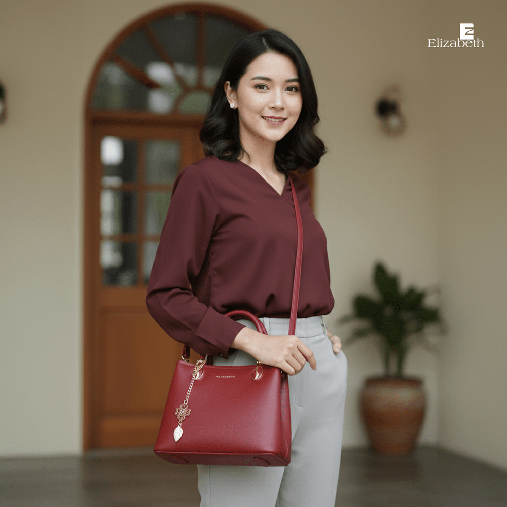 0706-1904 – Tas Wanita Elizabeth ini dirancang dengan desain minimalis dan model tas klasik yang elegan. Tas tangan dengan warna solid yang anggun dan trendy untuk berbagai tampilan sehari-hari.