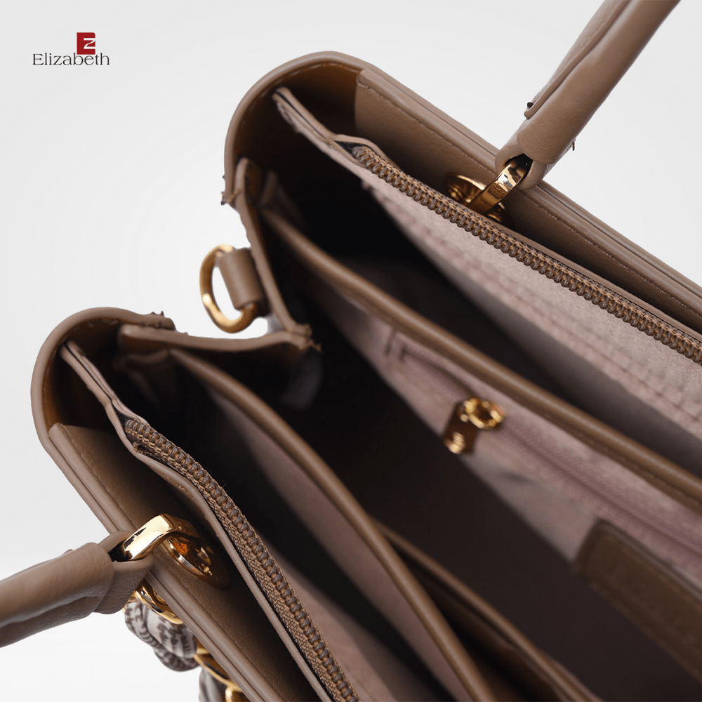 0798-1997 – Tas Wanita Elizabeth ini dirancang dengan desain minimalis dan model tas klasik yang elegan. Tas tangan dengan warna solid yang anggun dan trendy untuk berbagai tampilan sehari-hari.