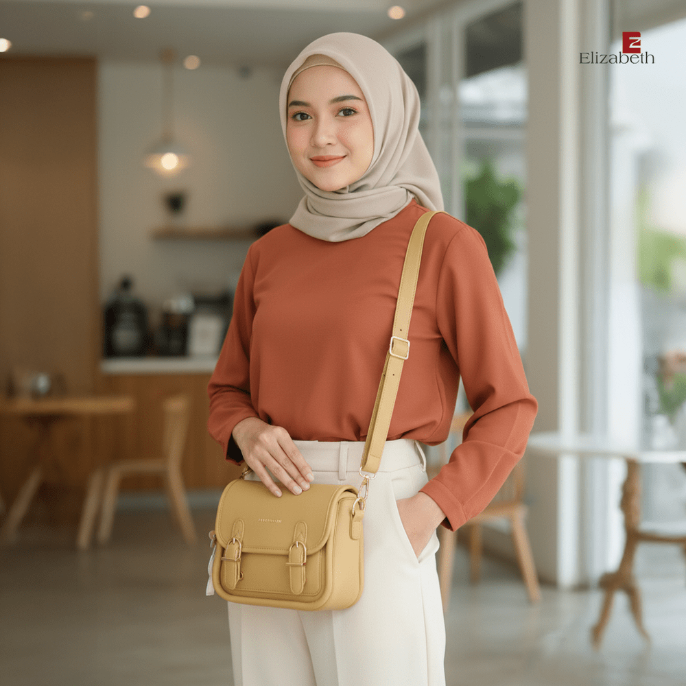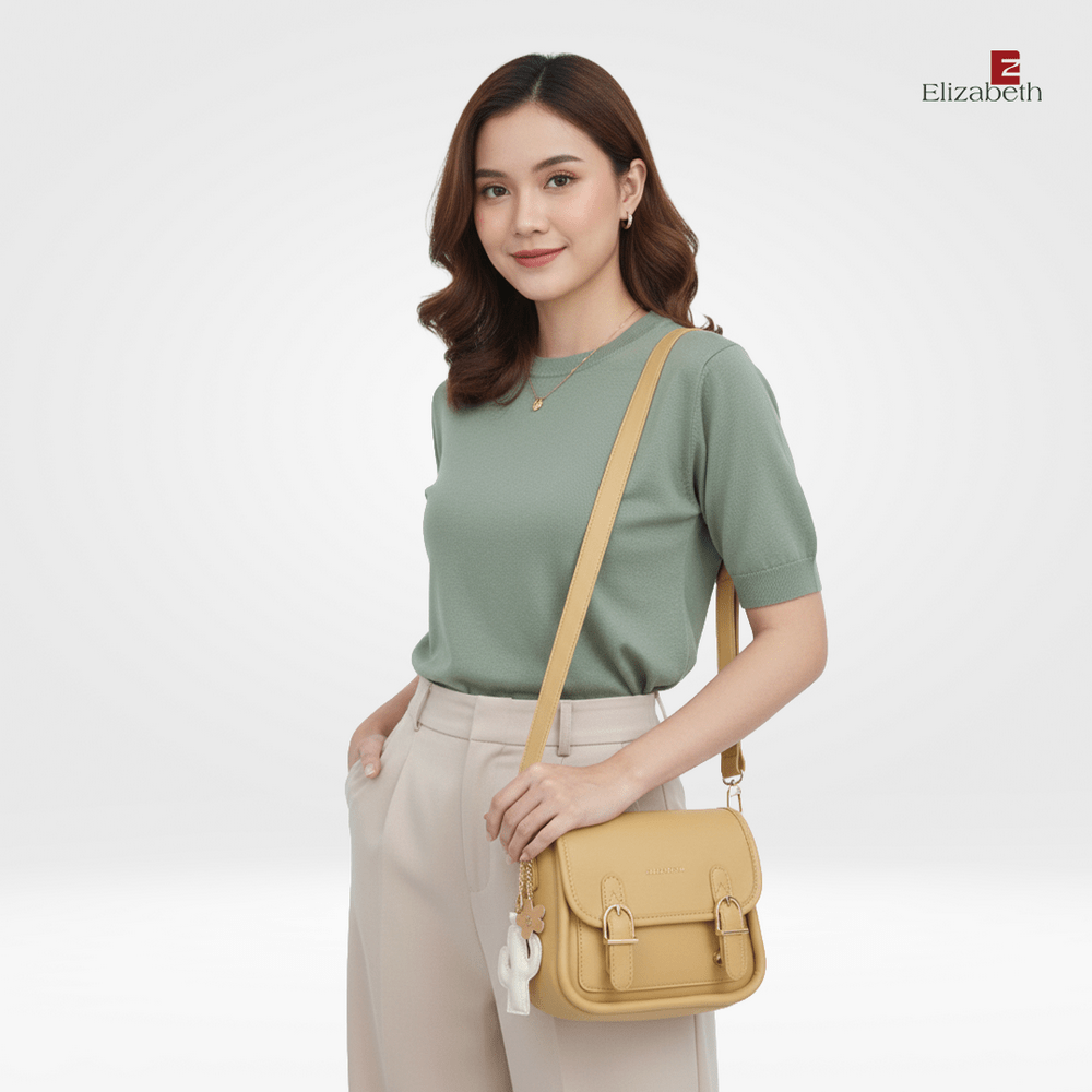 0055-6375 – Tas Wanita Elizabeth ini dirancang dengan desain minimalis dan model tas klasik yang elegan. Tas selempang dengan warna solid yang anggun dan trendy untuk berbagai tampilan sehari-hari.