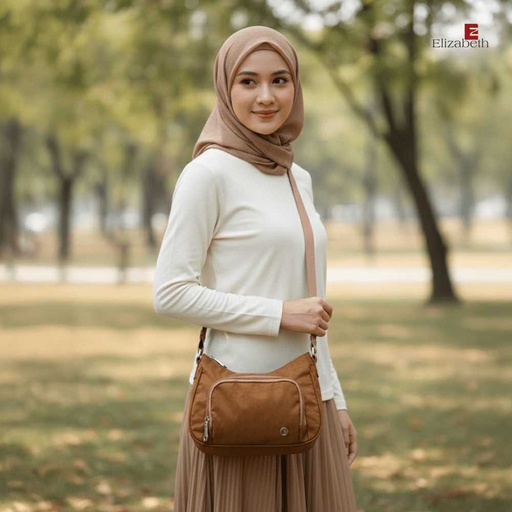 0055-6441 – Tas Wanita Elizabeth ini dirancang dengan desain minimalis dan model tas klasik yang elegan. Tas selempang dengan warna solid yang anggun dan trendy untuk berbagai tampilan sehari-hari.