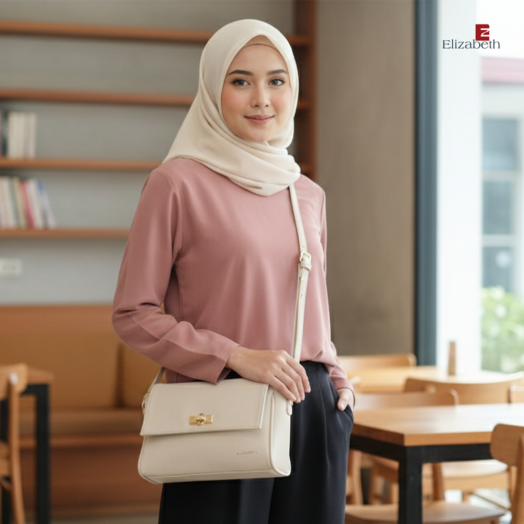 0022-1663 – Tas Wanita Elizabeth ini dirancang dengan desain minimalis dan model tas klasik yang elegan. Tas selempang dengan warna solid yang anggun dan trendy untuk berbagai tampilan sehari-hari.
