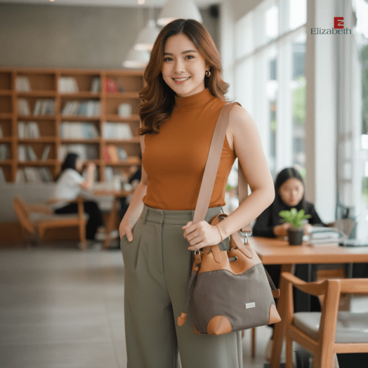 0055-6116 – Tas Wanita Elizabeth ini dirancang dengan desain minimalis dan model tas klasik yang elegan. Tas selempang dengan warna solid yang anggun dan trendy untuk berbagai tampilan sehari-hari.